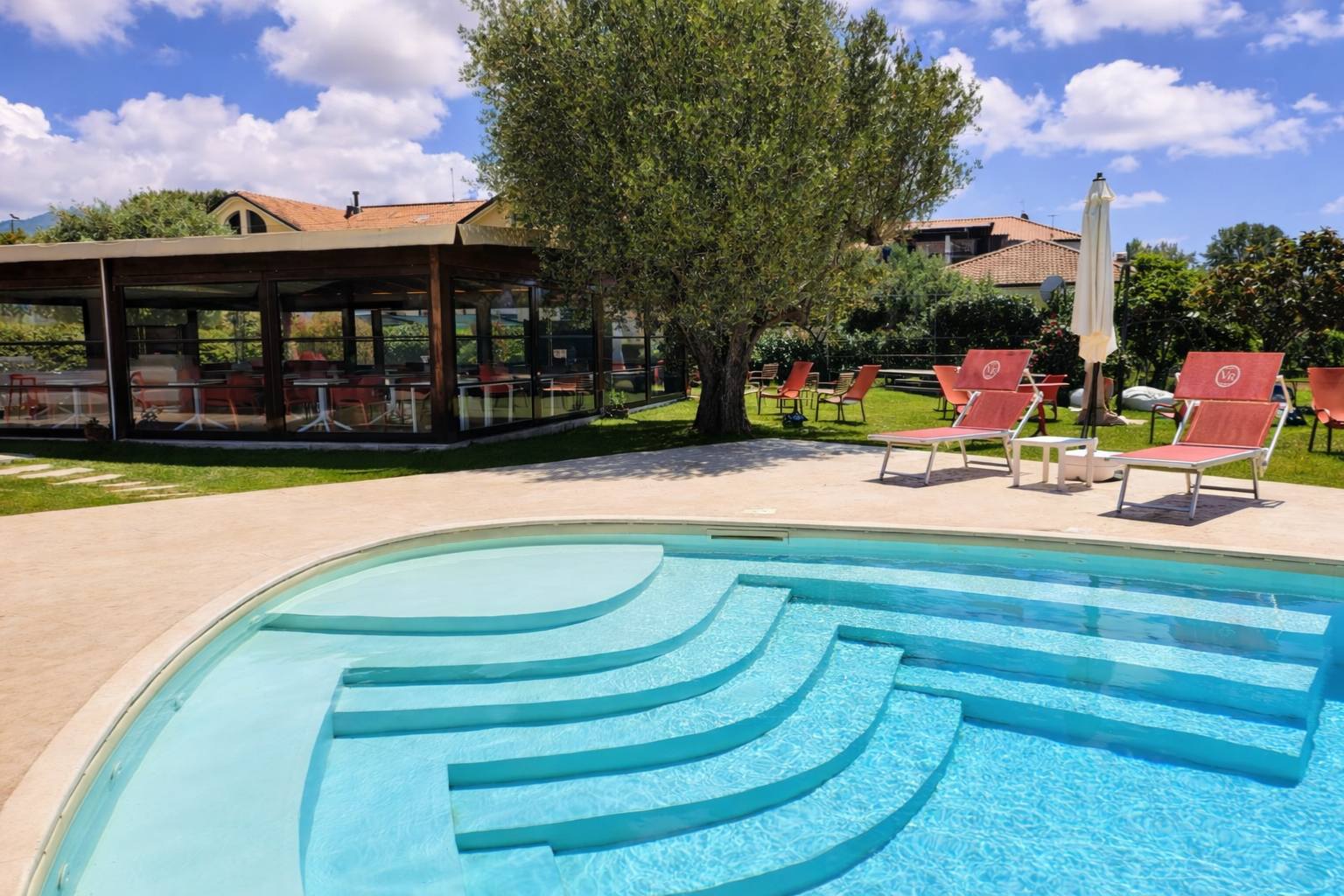 Gli spazi esterni, la piscina, il giardino e le aree comuni.